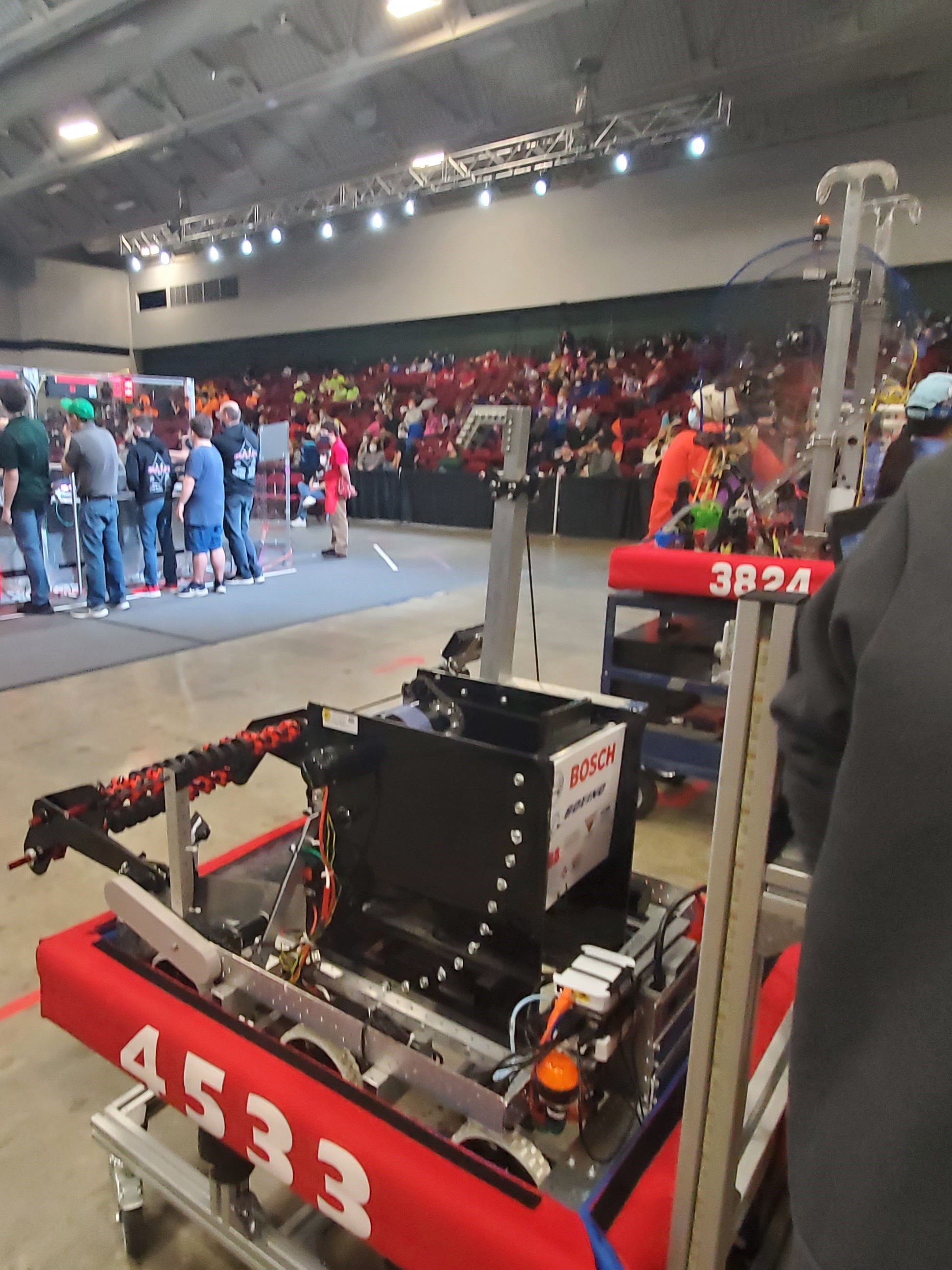 We were required to pick up very large tennis balls called cargo, and launch them into a hub where they were counted for points. We also had to climb a series of increasingly higher rungs. We went to Electric City and Smoky Mountain Regionals in season, and SCRIW off-season. We were finalists at Electric City and SCRIW.
