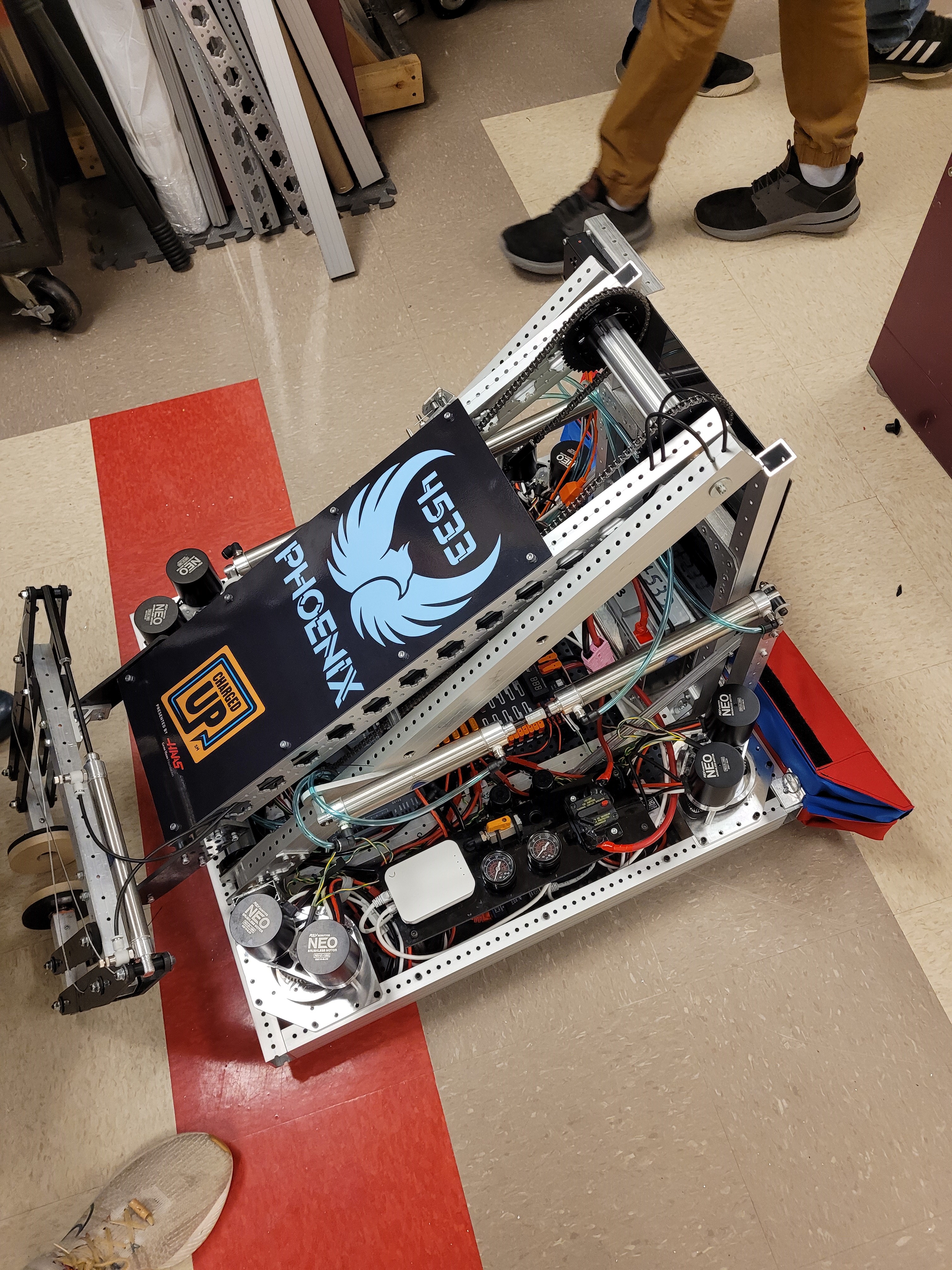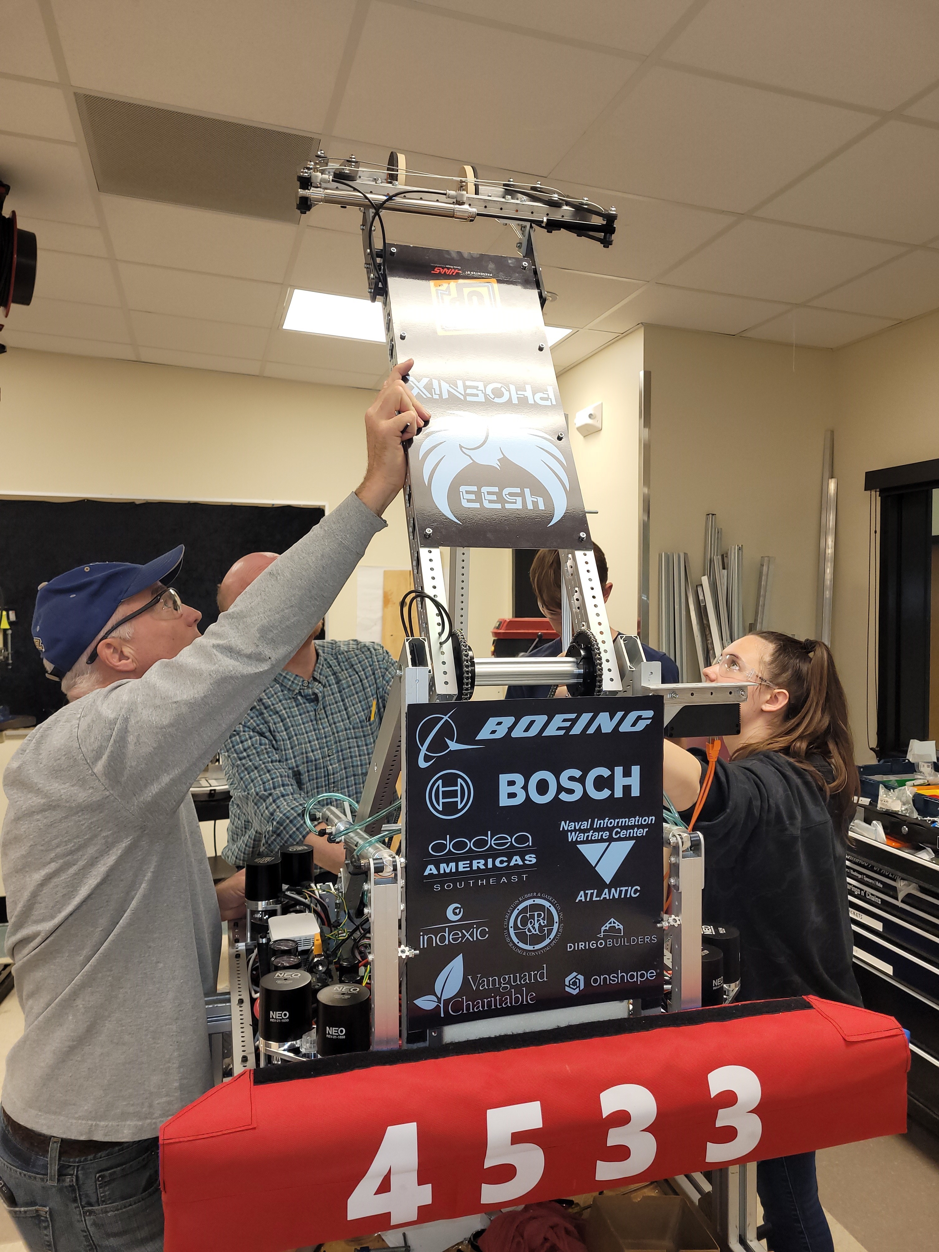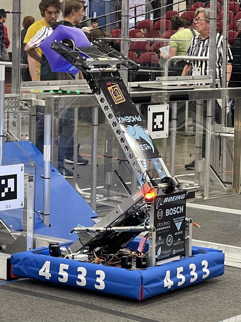 This season required us to pick up cones and cubes and put them onto poles and boxes to score points. After that we had to balance on a balance beam, with the other robots on our alliance. This was our first year in the Peachtree District. We went to the Anderson and Hartsville district events and we were first pick of the Second Alliance and Captain of the Fourth Alliance respectivly. We also reached the District Championship and ended up being the Second Pick of the Second Alliance.
